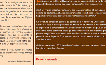 Deux ans de publication régulière de notre fil de terre. De la grippe A au jumelage avec Târgu Neamt, en passant par le château d’Essalois, les (…)