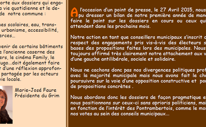 Un an après les élections municipales, le GRIM et vos élus de gauche apportent toujours la plus grande attention à vos dossiers et de nombreux (…)